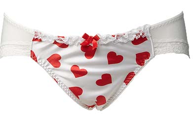 ホワイトのサテン生地に真っ赤なハートがいっぱい!